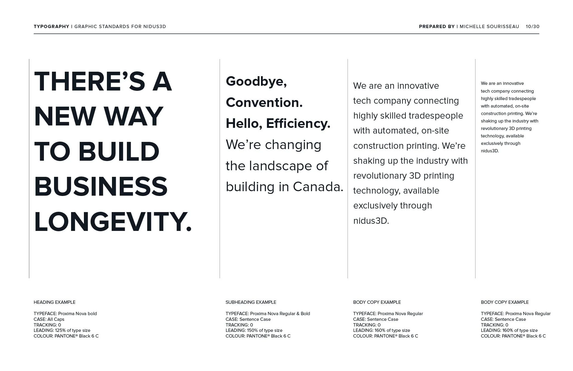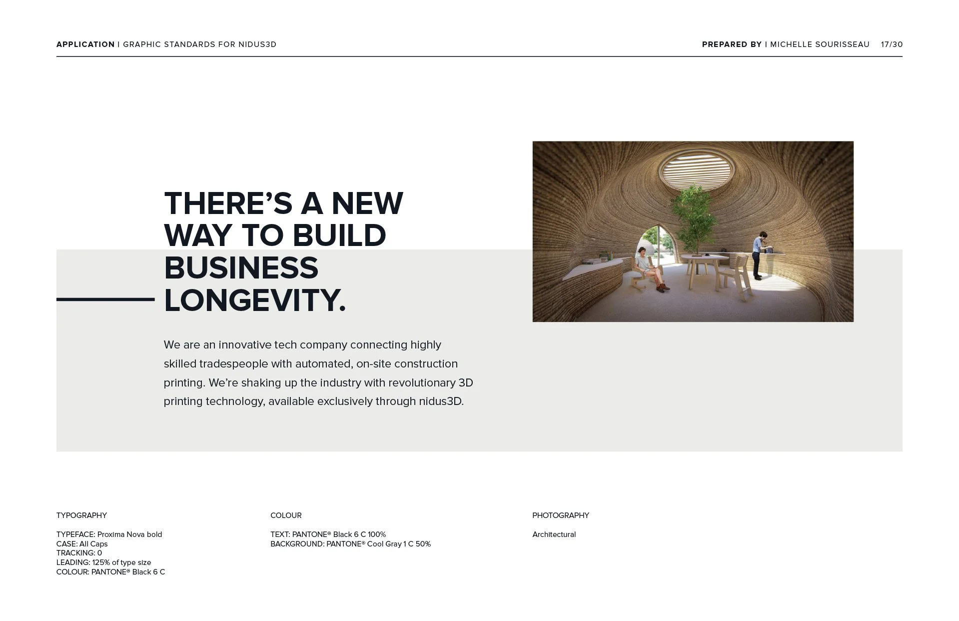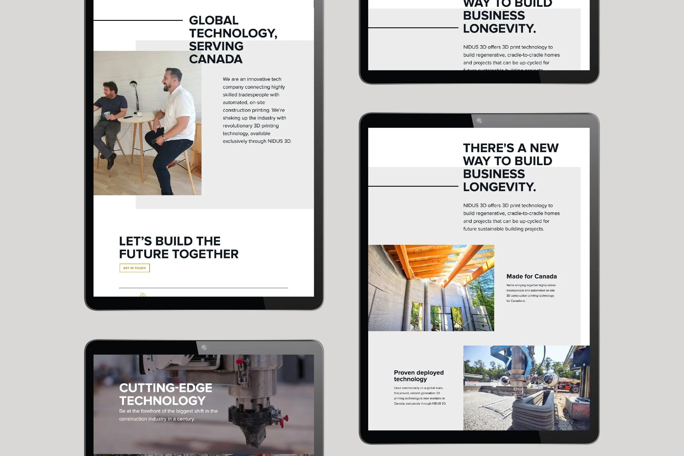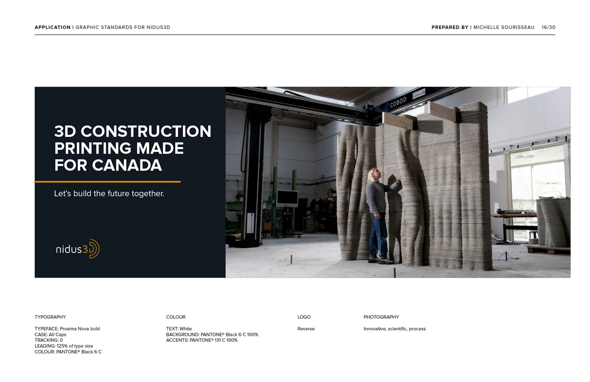 nidus3D’s visual identity is built on their mission to revolutionize the construction sector through technology innovation. This vision is captured through inspiring imagery, clean layouts, and bold type. While nidus3D is a Canadian company with a Canadian audience, the technology originated in Denmark. We wanted the overall look and feel of nidus3D to echo the clean, functional, straightforward approach from its Danish roots.