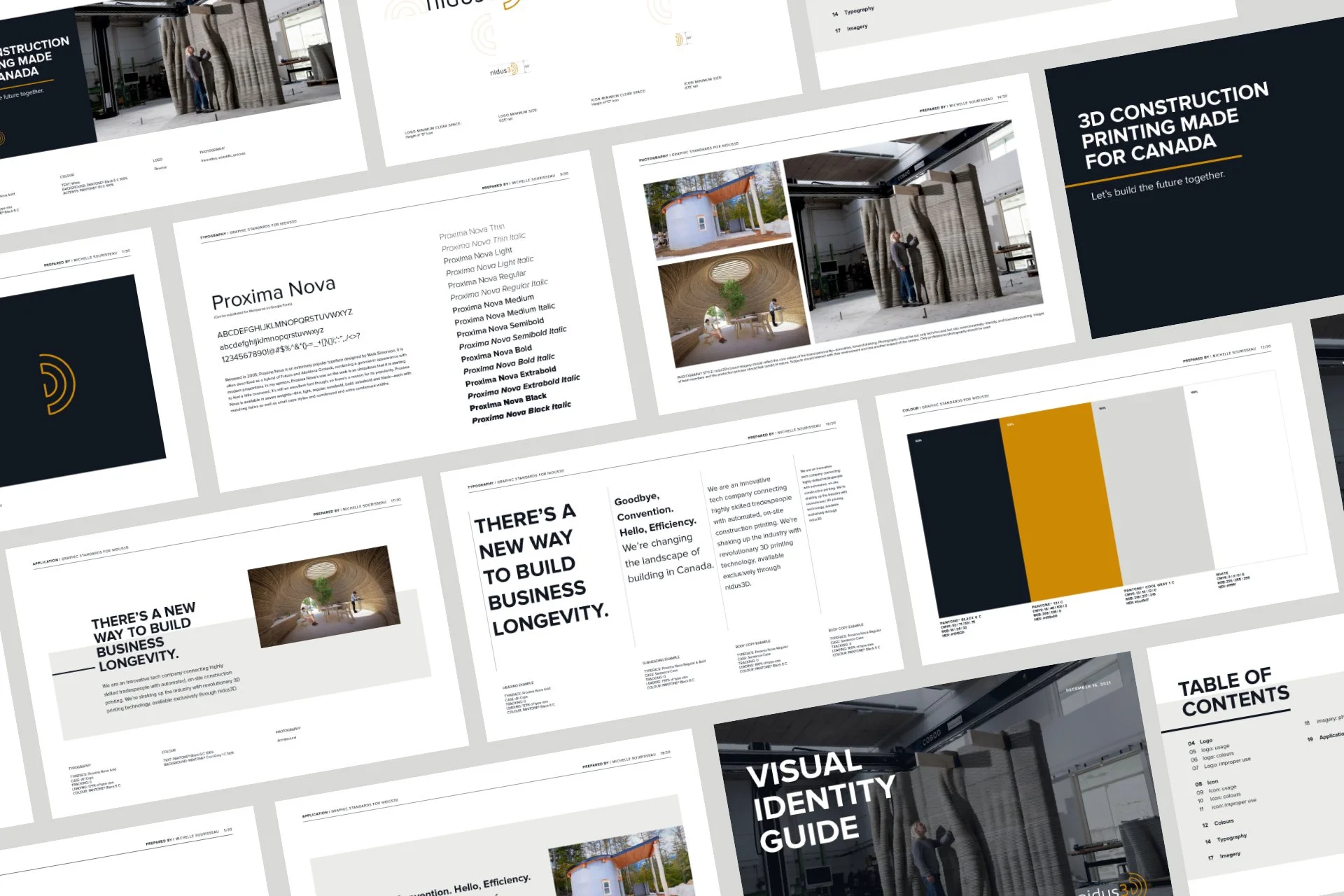 nidus3D delivers rapid, low-cost printed structures through automated, on-site 3D concrete printing. An innovator in robotic construction, nidus3D built Canada’s first residentially-permitted 3D-printed structure and North America’s first two-story and three-story 3D-printed buildings. We were invited to work with the founders of nidus3D, before the company had printed their first project, to help materialize the their vision through the creation of a logo, visual identity, and website.