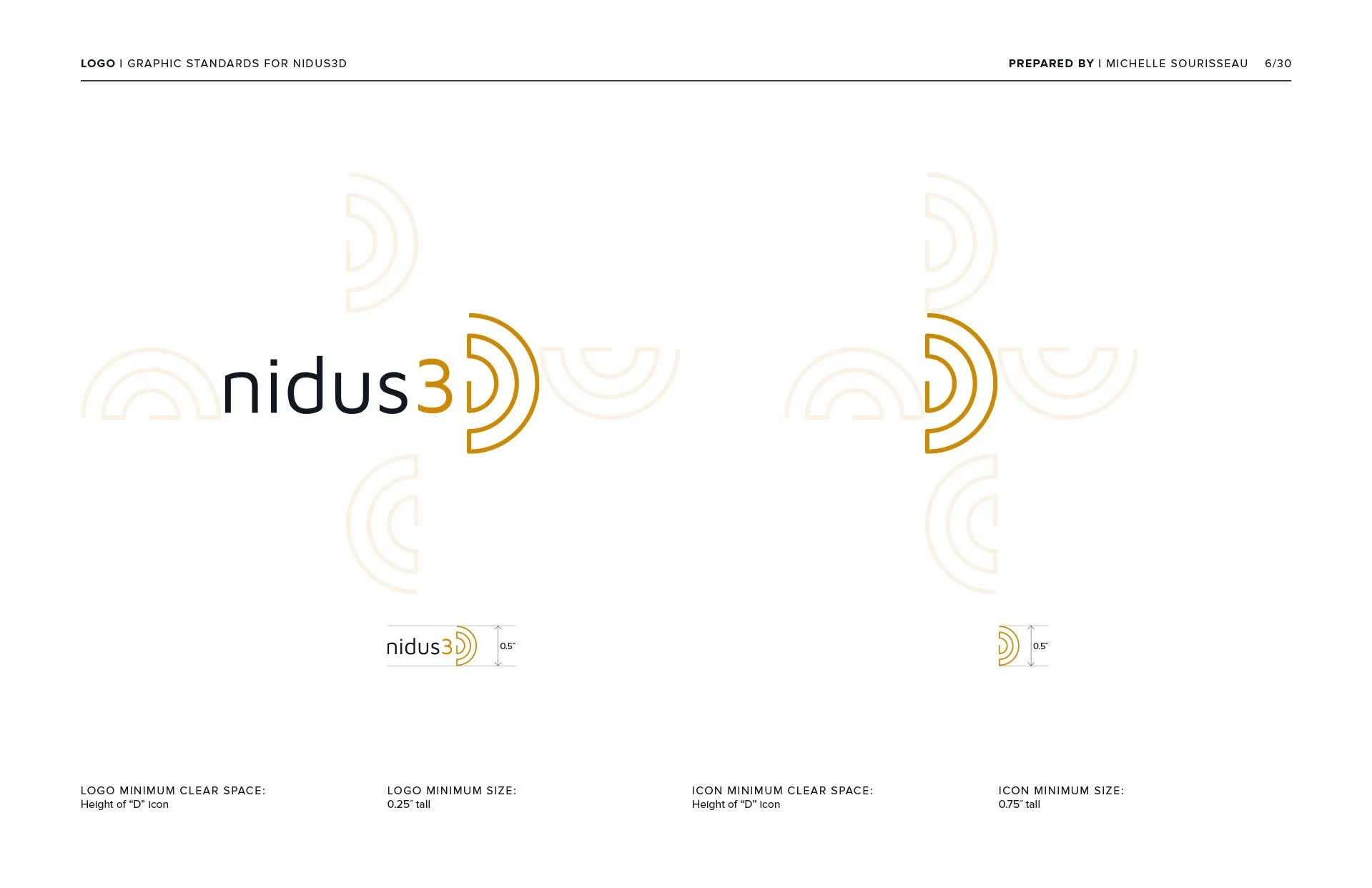 The name nidus (a place or situation in which something develops or is fostered) 3D (concrete printing technology) summarize their vision to revolutionize the construction industry. The nidus3D logo is composed of sleek, linear, type. The curve of the “D” in “3D” is connected through a switchback of curved, continuous lines that emulate the seamless concrete printing process.